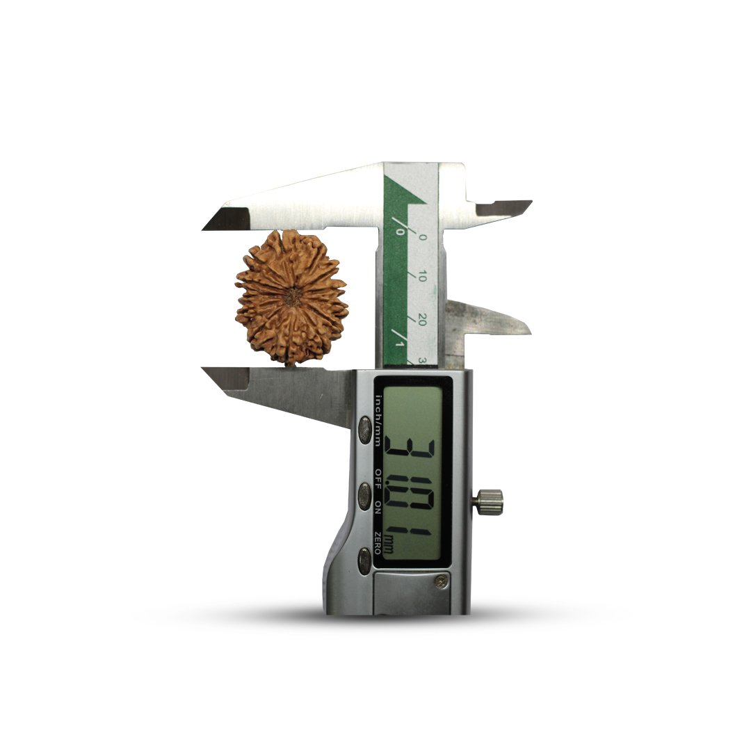 Thirteen Mukhi Rudrakshas have 13 distinct lines running from top to bottom of the bead, which gives rise to thirteen “faces” or “mukhi’s”. X-rays can identify the compartments inside the bead. The number of compartments should be equal to the number of lines/faces.